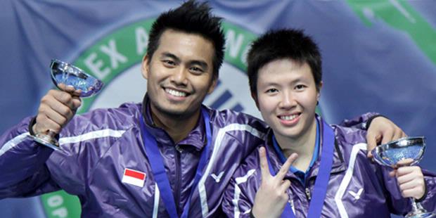 Ganda campuran Indonesia, Tontowi Ahmad (kiri) dan Liliyana Natsir,